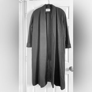 Stylish long black coat with a sleek design. Perfect for any occasion.