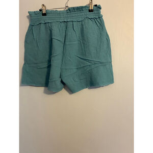 NWOT Zenana teal colored summer shorts. Shorts have an elastic waist with a functional tie in the front. Shorts are 100% cotton.