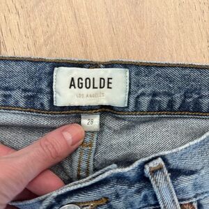 Chic straight leg jeans by Agolde. Light blue hue. Perfect for versatile styling.