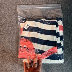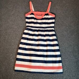 Vineyard Vines Navy White Striped Cotton Dress Coral Lace Trim Size 2