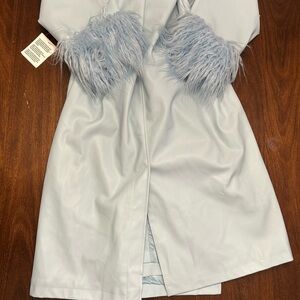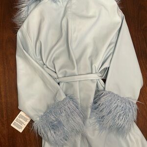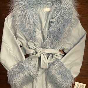 ASOS Sky Blue Leather Jacket with Plush Fur