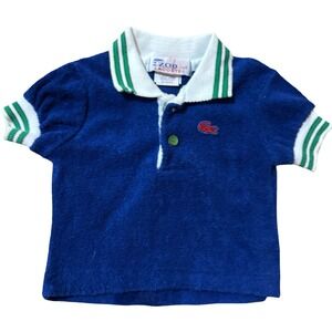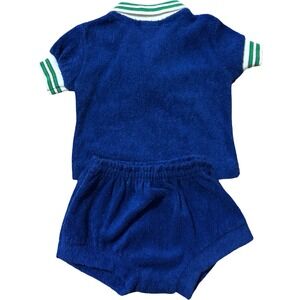 Vintage Izod Lacoste Baby 6M Blue Terry Cloth Polo Shirt Shorts Set USA