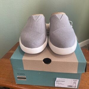 These Toms are brand new in the box. It looks like they've never been worn. Size 9.5