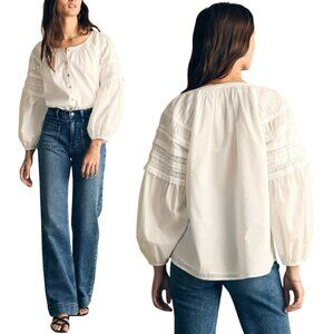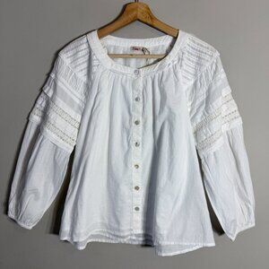 Faherty Enna Button Up Blouse Top Womens XXS White Boho Flowy Organic Cotton NWT