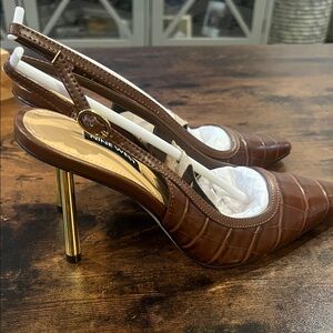 Chic croc-embossed heels by Nine West. Stylish slingback design. Perfect for elevating any outfit.