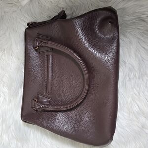 Elegant and eco-friendly, this Matt & Nat handbag in rich brown is perfect for any occasion. Crafted with attention to detail, it offers both style and functionality. In good used condition, some corrosion on inside zipper
