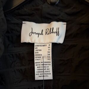 Joseph Ribkoff NWT Sz 10 woven jacket effortlessly combines comfort and contemporary chic. Boasting a bold bubble texture, the piece features a double-wired collar that creates a distinctive frame, accentuating the neckline. The opened sleeves add a stylish dimension to the fit and flare silhouette. With a scarf bottom