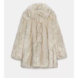 Zara Cream Faux Fur Coat