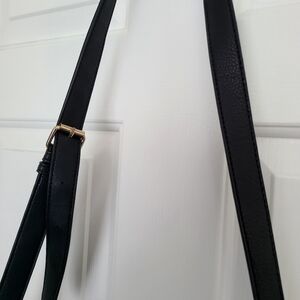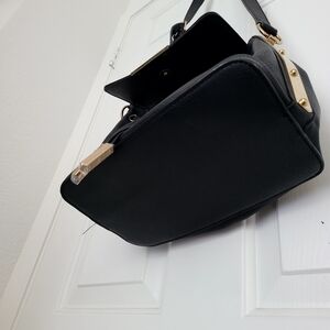 Stylish and versatile, this ALDO black with gold trim bag is perfect for any occasion. Its sleek design and high-quality finish make it a must-have accessory. Total of 4 pockets, 1 pen pocket holder inside plus one additional zipper pocket outside. Strap is adjustable.