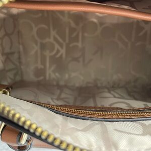 Calvin Klein Brown Logo Barrel Satchel Crossbody with Detachable Strap