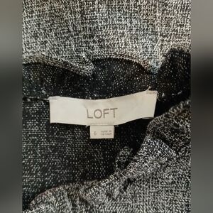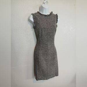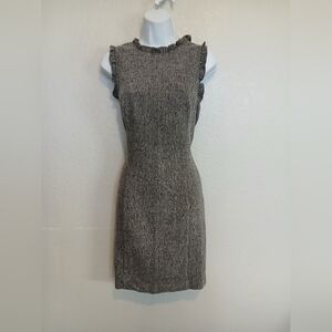 LOFT Grey & Black Tweed Sleeveless Sheath Dress Ruffle Neck & Sleeves. Cotton