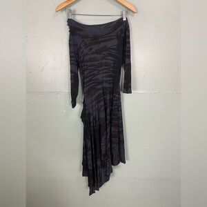 Heyne Bogut Tie Dye Asymmetrical Dress Blue Black Artsy Stretchy Small