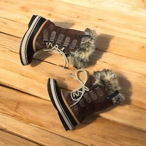 Sorel Black and Cream thick leather Fur-Lined Boots size 6