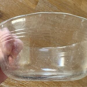 Classic vintage Pyrex clear glass bowl with ribbed exterior design. Perfect size for prep work, small servings, or as part of a nesting bowl collection. Marked 300ml (about 1.25 cups). Made in USA.