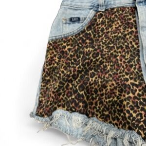 Vintage Lee Blue Denim Cheetah Print Cut off Raw Hem Shorts