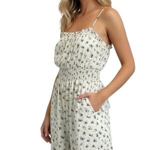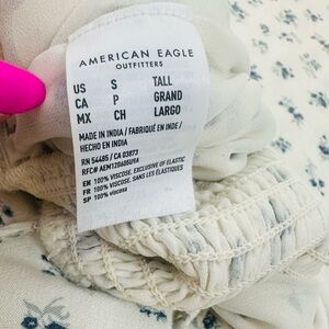 AE White Blue Floral Smocked Wide Leg Crop Jumpsuit Size S Tall NWOT Boho