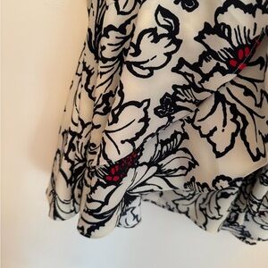 Julie Brown NYC floral blouse with ruffled bell sleeves in a size 6. Black and white floral with pops of red. Blouse is in excellent condition- no stains, holes, or flaws. Open to offers and bundles. Fast shipping!