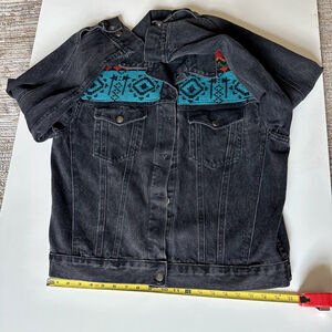 Vintage Woolrich Aztec Black Denim Jacket Size Small Navajo Tribal