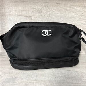 Chanel beauty! Sleek black nylon pouch with distinctive logo. Ideal for organizing essentials. Super roomy and cute!