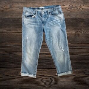 Levis Women's Boyfriend Cropped Jeans Size 30 Distressed Blue Stretch Cuffed