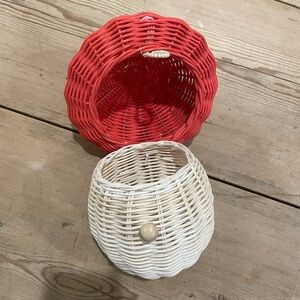 Charming woven mushroom-shaped bag in red and cream. Purchased and never used. Super cute! Wicker.