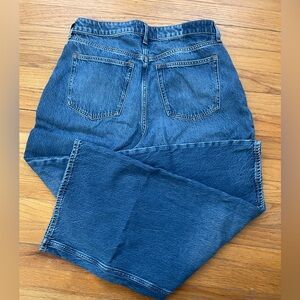 Stylish wide leg jeans. High rise fit. Classic blue denim.