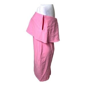 New with tags. Color: Sachet Barbie bubblegum pink color. Strapless neckline. Silhouette hugging dress. Flounce bodice. Elegant and flirty. Sleeveless. Side zip closure. Vented hem. Polyester rayon spandex blend. Bodycon. Mini short length almost at knee.