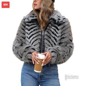Faux Fur Coat Fluffy Cropped Oversized Shaggy Jacket Chic Winter Outerwear