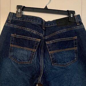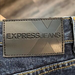 Stylish Express vintage dark wash jeans in a flattering bootcut silhouette. These classic denim jeans feature a timeless design that pairs easily with casual or dressed-up outfits.
