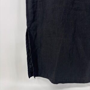 Talbots Petites Black Irish Linen Sleeveless Midi Shift Dress Side Slit Size 8P