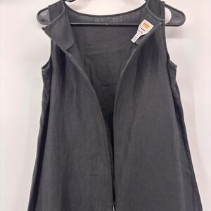 Talbots Petites sleeveless shift dress is crafted from premium Irish linen in a versatile solid black. This midi-length piece features a classic round neckline and a clean, minimalist silhouette that transitions effortlessly from day to evening. Designed with functional side slits for ease of movement and a discreet back zipper closure, it offers a refined and breathable option for warm-weather styling.
