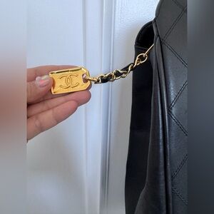 Chanel Supermodel bag in black lambskin quilted design. Features elegant gold chain straps and logo detail. In great condition and comes with dustbag and box.