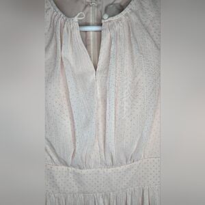 Feminine, romantic, and effortlessly elegant—this Gal Meets Glam Collection dress is a dreamy wardrobe staple. Featuring a soft blush pink hue with delicate Swiss dot texture, this midi-length dress combines vintage-inspired charm with modern sophistication.