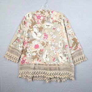 Coldwater Creek V-Neck Lace Hem Pleated Front Floral Print Top Multicolor L