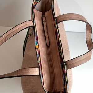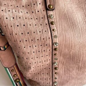 Paula Rossi Faux Leather Tote Large Pink Studded Crossbody Travel Boho Purse