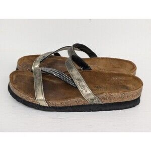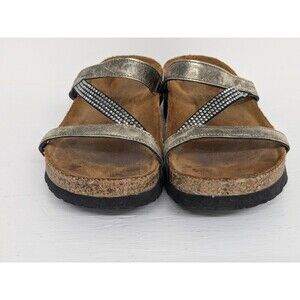 Naot Womens Hawaii Slide Sandals Silver Leather Rhinestone Wedge Slip On 9 EUR40