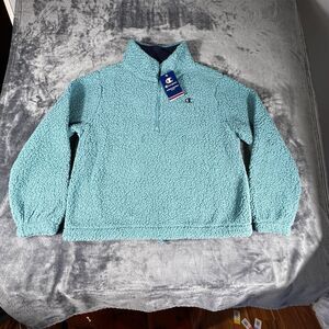 Champion Womens Sz XL Teal Sherpa Fleece Sweatshirt Top 1/4 Zip Athleticwear NWT