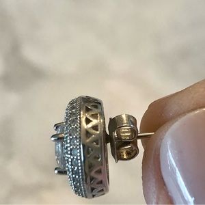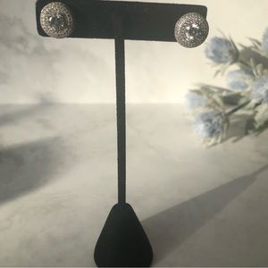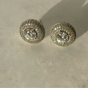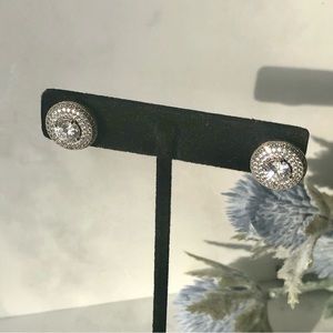 Gorgeous stud earrings with CZ stone in the center surrounded by three rows of tiny CZ stones.