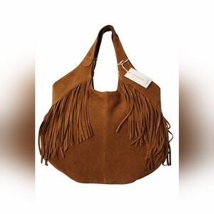 Lucky Brand Nyra Copper Brown Fringe Leather Hobo Bag NWT
