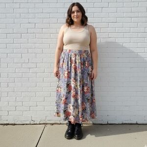 Vintage 90s High Rise A-Line Floral Cottagecore Skirt Midi Peasant Blue 1X 2X 3X