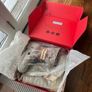 Cozy and durable winter boots. Lace-up design with sturdy soles. Ideal for cold weather. levate your everyday look with the versatile Hunter Skylar boots. Designed with a nylon gusset to keep you dry and shielded from the elements, these booties combine function and fashion seamlessly. Plus, their 100% waterproof construction ensures you stay protected rain or shine