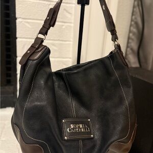 Sophia Caperelli Elegant Black and Brown Hobo Bag