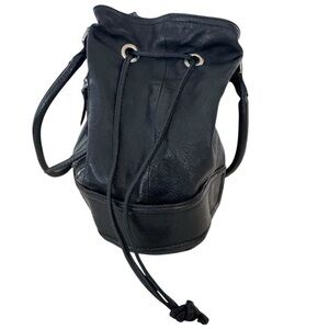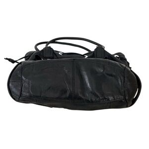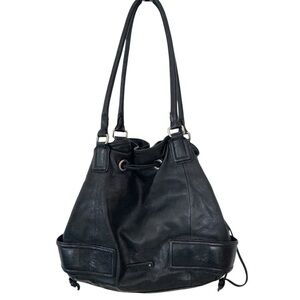 Cole Haan Drawstring Hobo Bag Black Leather Large Shoulder Bag Silver Hardware
