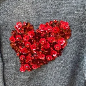 Moth Anthropologie Gray Knit Cardigan Red Sequin Heart XS Petite