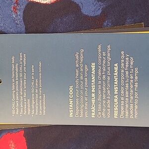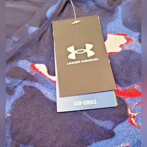 Bold camo pattern with red and blue hues. Perfect for active wear. Comfortable and stylish. Instant cool. Built in protection from UV rays.