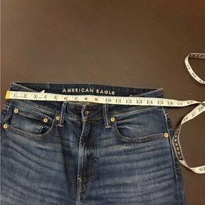 Discover comfort and style with American Eagle Outfitters men's blue jeans. Perfect for any casual occasion. Athletic straight style. More measurements in photos.