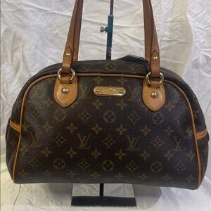 Louis Vuitton monogram Montorgueil PM should bag in good condition. Normal signs of use include discoloration on top of handles, normal darkening of vanchetta leather, scratches and aging of hardware. Great corners! No unusual odor. Clean inside. COA in photos