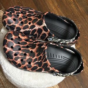 Bold animal pattern clogs. Lightweight and easy to wear. Ideal for everyday comfort.