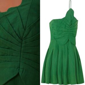 Farm Rio One-Shoulder Lea Mini Dress Green Linen Blend Size Medium