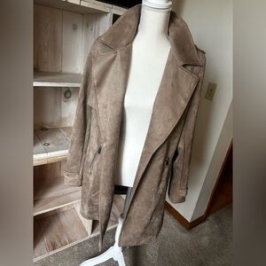 MAGASCHONI Tan Faux Suede Open Front Jacket Size Large